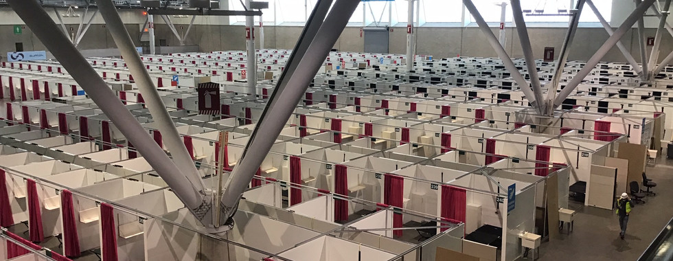 In April 2020, as Boston and other major cities around the world saw massive increases in COVID-19 cases, hospitals were overrun and hospital beds were hard to come by. When the Commonwealth of Massachusetts, City of Boston, Partners Healthcare, and Suffolk Construction came together to build a 1000-bed temporary hospital space inside of the Boston Convention Center, New England Finish Systems' carpenters were eager to help in any way they could. Utilizing over 100,000 sq. ft. of warehouse space at NEFS headquarters in Salem, NH, a team of more than 90 union carpenters and laborers worked around the clock to build over 10,000 sheets of drywall, which were then transported to the city 24 hours a day to ensure the facility was completed as quickly as possible.